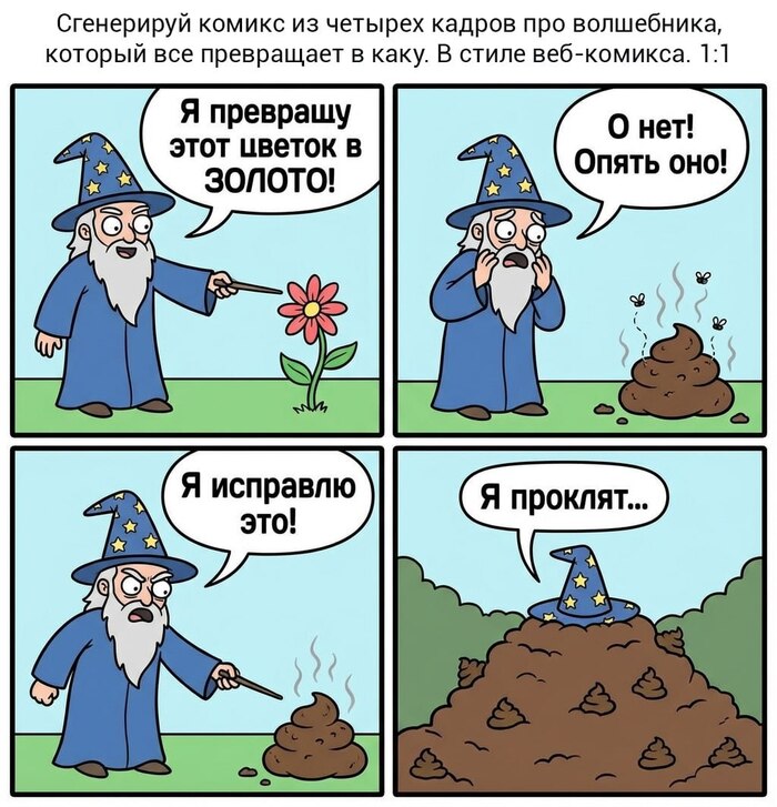 Вставляешь промпт(указал ниже) → запускаешь генерацию → получаешь результат.