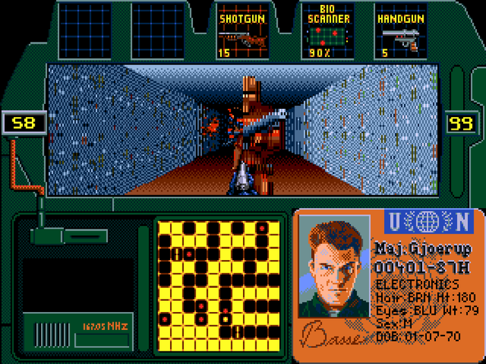 На космической станции "Европа" произошла катастрофа и специальная группа направляется для ликвидации опасности. Хоть игра и уступает по техническим возможностям представителям жанра с персонального компьютера, её отличает атмосфера триллера - чутко нагнетаемый саспенс (как в кинофильме "Чужой"). Карта значительно облегчает ориентацию в пространстве этапа. Если уничтожить всех врагов на уровне, можно получить пароль. Управление: A - держать позу (в этом режиме можно прыгать и приседать), B - выстрел, C - смена оружия. Слева показано количество врагов в помещении, справа - здоровье героя. У каждого члена команды есть свои сильные стороны, поэтому советуем вам ознакомиться с их досье перед началом. Отличный проект!