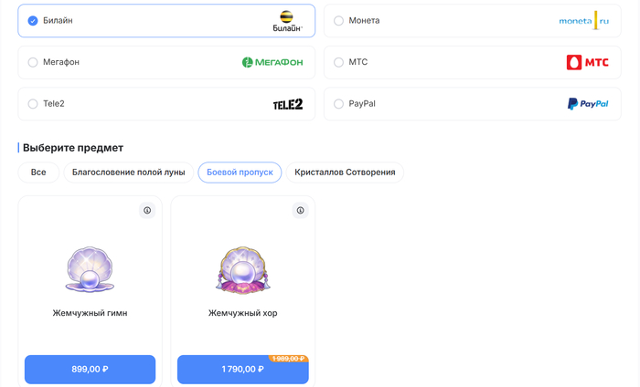3. Покупка БП, луны или примогемов на ggsel