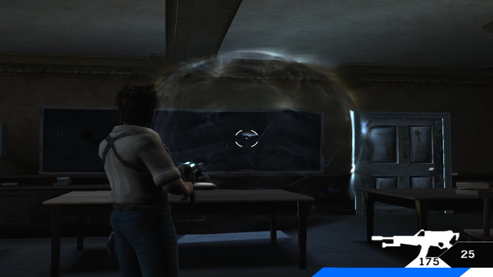 Сама шутерная механика сделана крайне странно. Главный герой не может стрелять на бегу, а режим прицеливания включается на отдельную кнопку, что делает битвы с быстрыми привидениями, использующими телепортацию и чардж, просто невыносимыми. Зачастую игрок просто не успевает выключить прицел и совершить уворот, что ведет к неизбежному получению урона.
