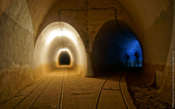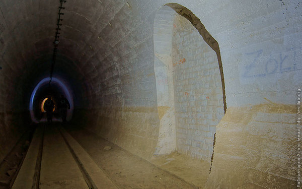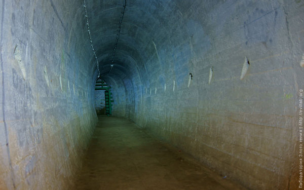 Обратите внимание на стены тоннеля: в нишах были размещены взрывные устройства, которые в случае захвата огневой точки могли разрушить тоннель и перекрыть доступ в другие части ЛДЧ.