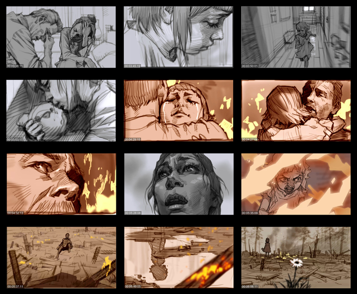Команда придумала сюжет синематика и составила сториборд. Затем перешла к выбору стилистики и добавления деталей, чтобы история обрела целостность и характер.