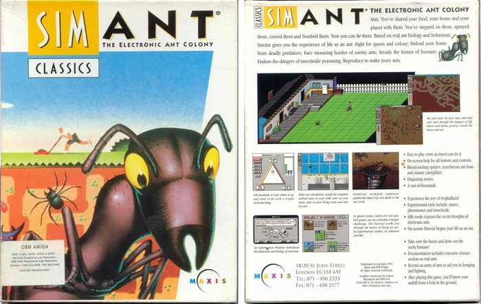 В 1991 году из-под пера Уилла Райта вышла игра SimAnt — необычный симулятор жизни муравейника, расположенного на заднем дворе загородного дома. Целью было не просто выжить и разрастись, захватив весь участок, но и вытеснить со своей территории как конкурирующую колонию муравьёв, так и самого человека, по какой-то причине решившего, что этот дом принадлежит ему.