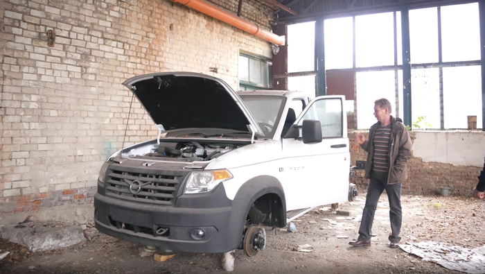 В 2020 году они сделали 50 таких машин. Но спрос упал, почему? Герой связывает это с пошлинами на вывоз зерна и падением рентабельности зернового бизнеса, которая сейчас иногда в отрицательных значениях., Цифры снизились драматически, после пикового года в 21 они продали 1 машину. Эхом от этой работы стоит в холодном цеху тот самый УАЗик, о котором говорил выше.