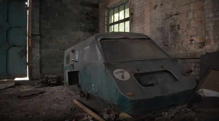 В холодном цеху лежит корпус и колеса вездехода, который был на Южном полюсе. Жить надо так, чтобы в подсобном сарае лежали именно такие штуки), и еще лежит полуразобранный УАЗ-Патриот. Он там остался от прошлой деятельности, о ней ниже.