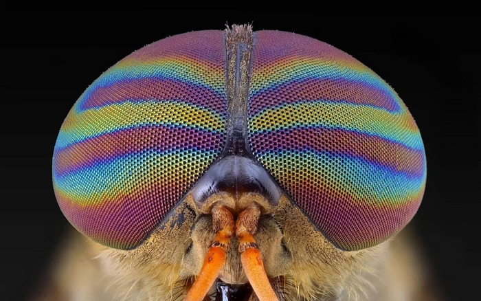 Первая из них связана с цветом. Насекомые видят совсем не так как мы, ведь у них развито фасеточное зрение. В одном глазу у букахи может быть от 3.000 до 25.000 фасеток — крохотных ячеек, фиксирующих изображение. Такое зрение отлично подходит для того, чтобы моментально считывать быстрые объекты. Но для разглядывания статичных предметов такие глазки подходят так себе.