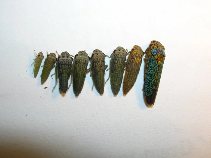 И это при том, что всю жизнь маленьких цикадок можно описать двумя действиями: они пьют и писают. Постоянно. Даже на размножение они особо не отвлекаются: сделали дело возле места кормёжки, отложили яйца и обратно присосались к веточке.