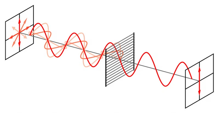 Слева — неполяризованный свет. Справа — поляризованный.