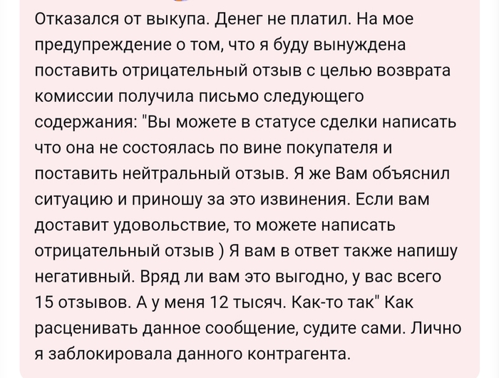 Не ведитесь на таких покупателей,