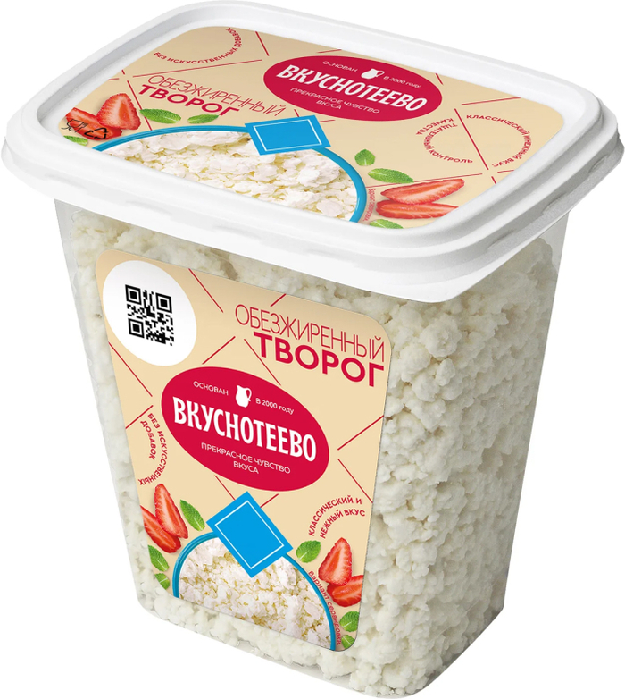 Нам нужно 40г творога на порцию. Творог должен быть обязательно зернистый и обязательно обезжиренный (0.5%-1%). Не потому что я упоротый ЗОЖник, а потому именно такой творог максимально рассыпчатый, не кислит и будет отлично контрастировать своим нейтральным вкусом с остальным блюдом. Например вот такой, но можете поискать другой: