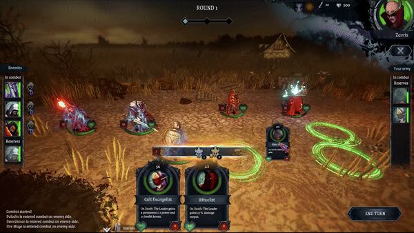 Боёвка пошаговая — выставляем наших миньонов (читай пушечное мясо) на поле боя, с противоположной стороны то же самое делает противник. И потом методично дубасим друг друга разными атаками, пока у одного из нас не закончатся все воины.