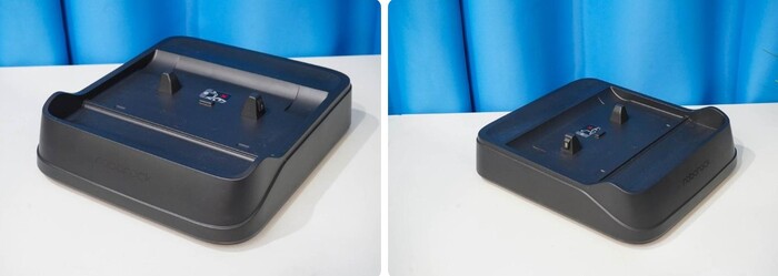 Пара слов про подставу из комплекта. Это пластиковое основание-база, которое используется не только для зарядки самого пылесоса, но и для проведения процесса очистки ролика в автоматическом режиме. Под ролик предусмотрено специальное углубление с бортиком. Подключается подставка к сети 220V.