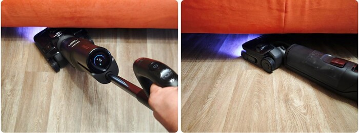 Вот, кстати, и подсветка выручает, особенно при уборке под мебелью. Свет выхватывает пыльные места, мусор, показывает, где еще не убирали или пропустили.