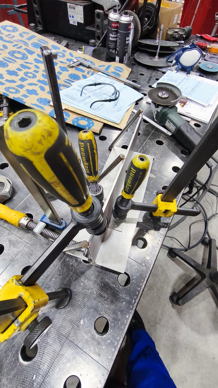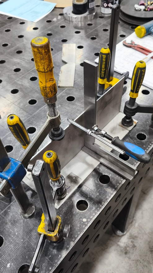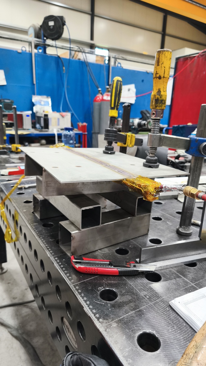 Далее собираю на прихватки стыковые соединения такие же пластины, но с фаской.