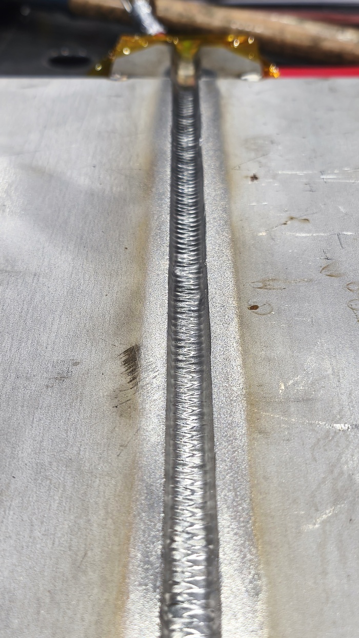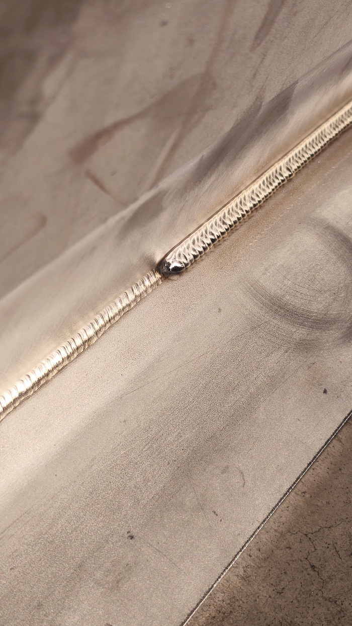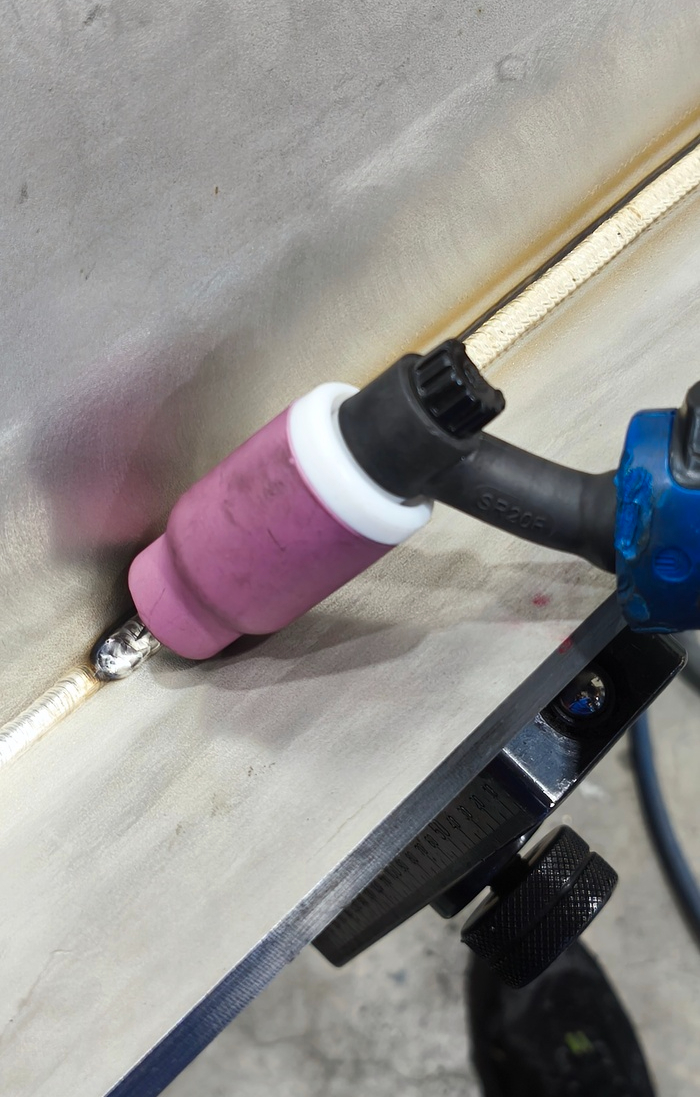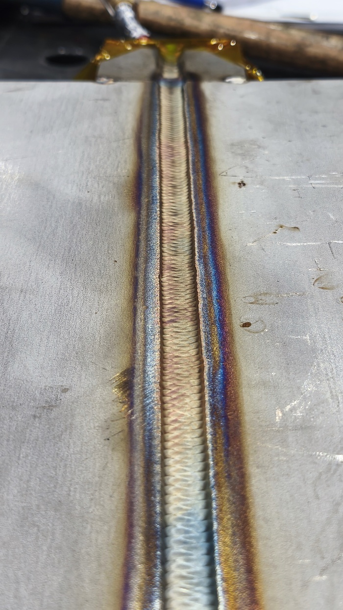 Процесс такой: я завариваю корневой шов, по ходу удаляя прихватки и зачищая шов нержавеющей щеткой от окисления и цветов побежалости. Затем делаю второй проход и снова очищаю. Далее идёт заполнение и очистка, снова заполнение и очистка, и в конце —👇🏻