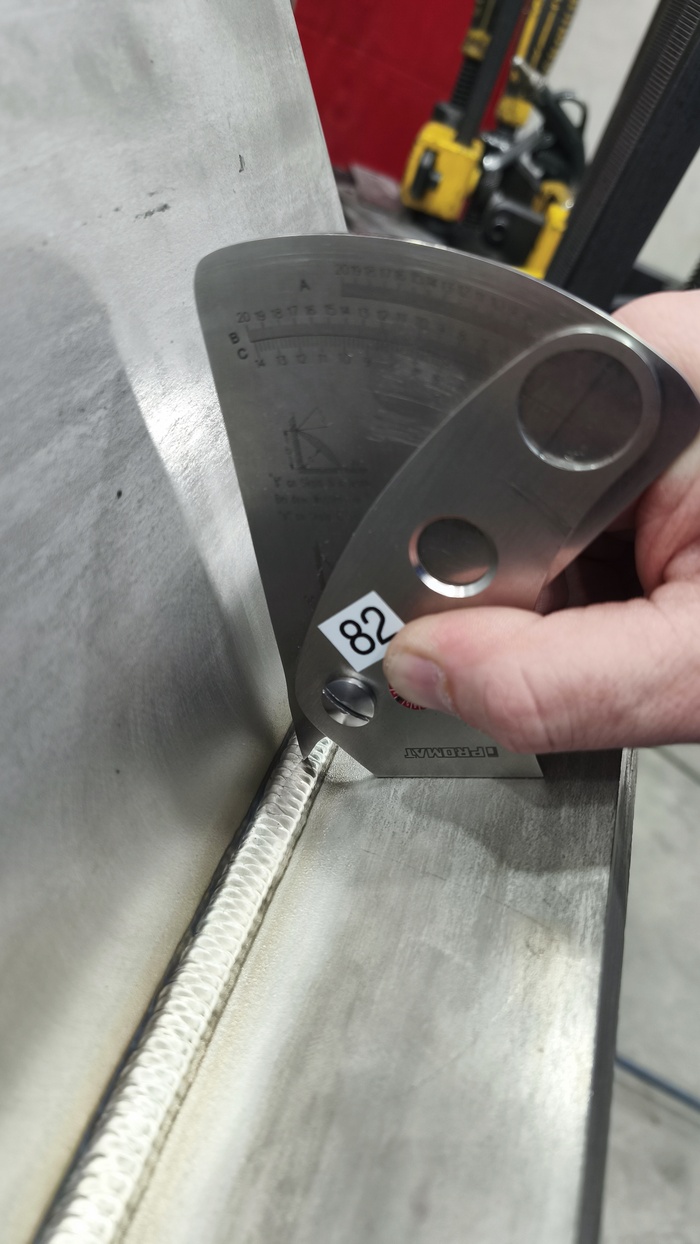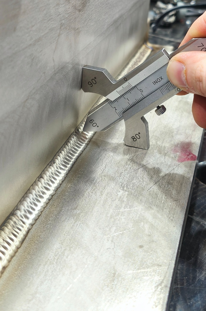 После сварки проверяю катет 3 миллиметра. Пластины выгибает от высоких температур, так что угла 90° нет, ну и хер с ним.