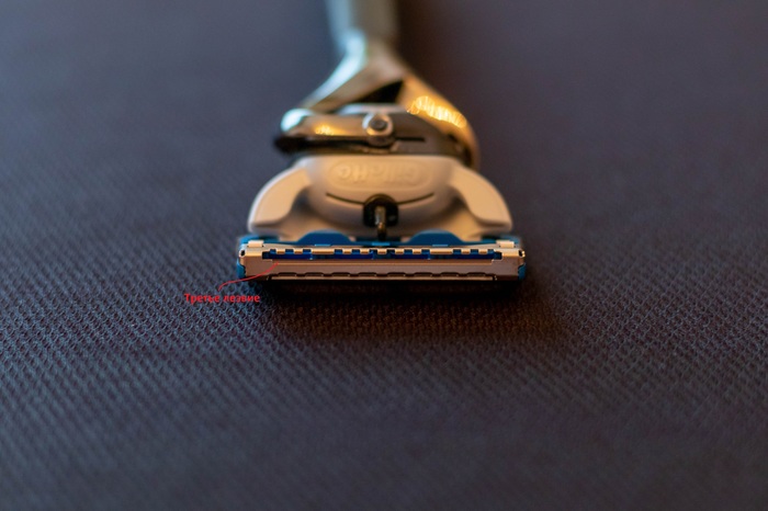 На кассетах Фьюжн5 и на этой есть дополнительное лезвие, выделил красным. Хорошо подходит для бритья висков.
