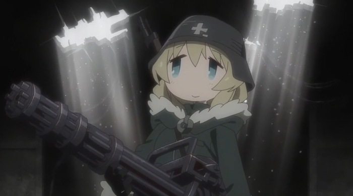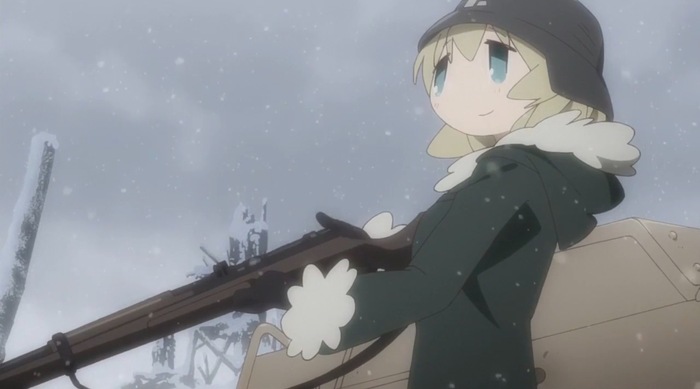 Сюжет понятен. Вот у нас есть смышлёная, спокойная и ответственная девушка Тито, которая не любит оружие и выступает водителем техники. А вот Юри это глупая, ленивая и любящая поесть девушка, что как раз стреляет довольно метко