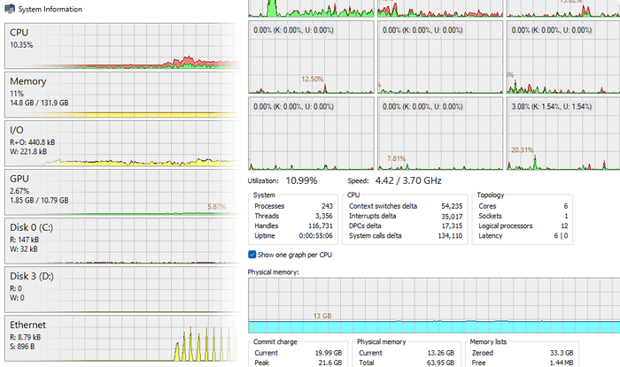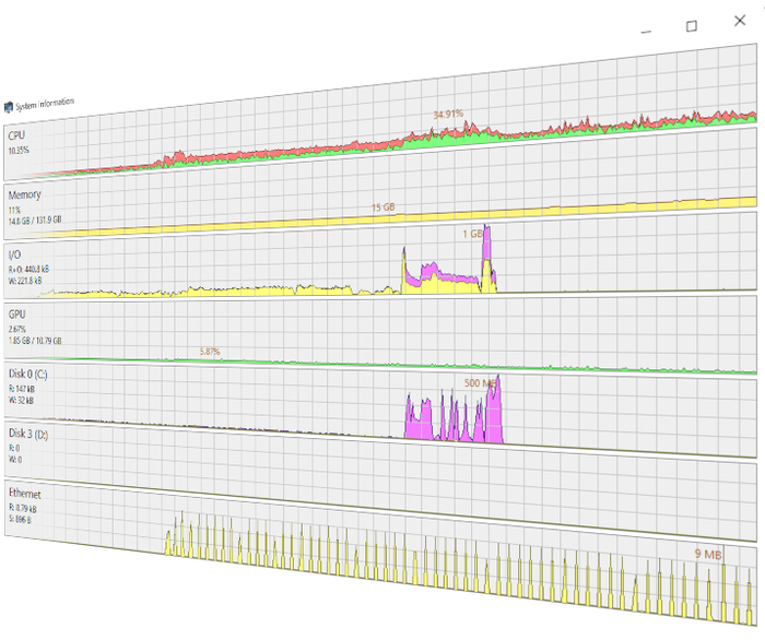 Детальный мониторинг ресурсов. Информативные графики и статистика в реальном времени показывают, что именно перегружает ваш процессор, оперативную память или диск.