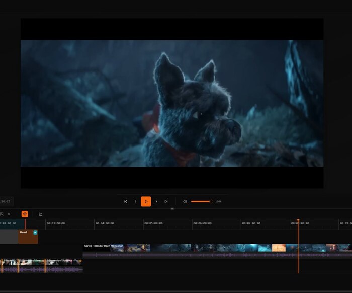 Полноценная шкала с несколькими дорожками под видео, аудио, графику, текст и фигуры.