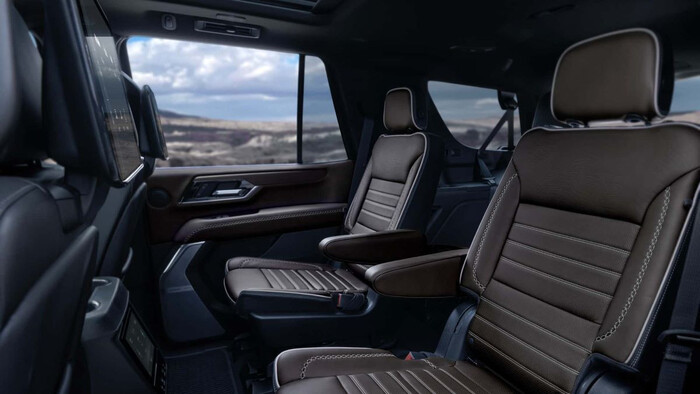 Внутри установлена полностью новая передняя панель, и она не имеет ничего общего с убранством родственных Chevrolet и Кадиллаков. Yukon стал единственной моделью с вертикальным экраном медиасистемы диагональю 16,8 дюйма. Причем под ним сохранился ряд физических клавиш, хотя их общее количество значительно сократилось. Перед водителем установлены новые руль и экран виртуальных приборов. В целом интерьер стал богаче, а в список опций входят климат-контроль на втором ряду (управление с отдельного восьмидюймового экрана), планшеты на подголовниках, панорамная крыша и премиальная аудиосистема, которая имеет 22 динамика, включая громкоговорители в подголовниках передних сидений. Комплекс электронных ассистентов расширен и дополнен тепловизором.