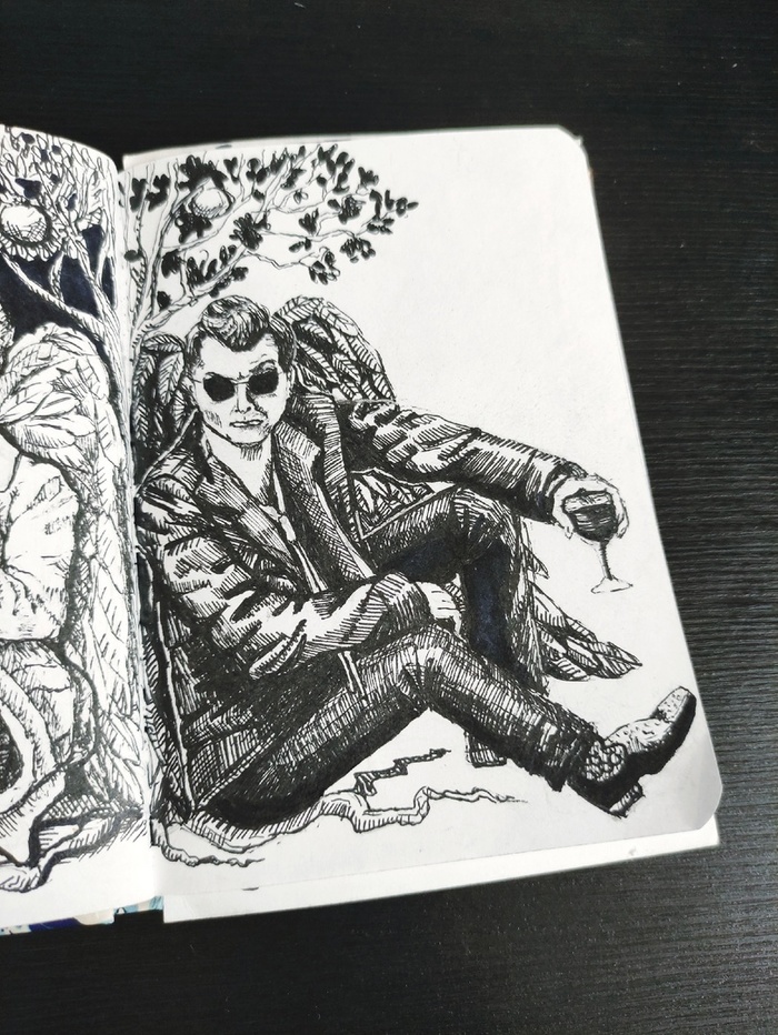 [моё] Inktober Рисование Рисунок Художник Благие знамения Ангел Демон Начинающий художник Скетч Скетчбук Традиционный арт Рисунок ручкой Дэвид Теннант Майкл Шин Длиннопост