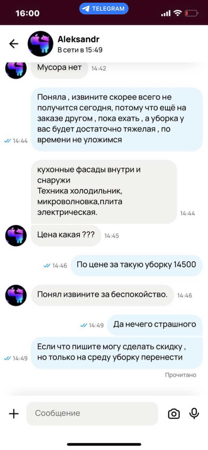 Я - клинер, с достаточным опытом и стажем работы; для меня главное - репутация и отзывы, за которые я готова на все, даже лишиться части денег; всегда договариваюсь с клиентами, если их что-то не устраивает; но недавно произошел возмутительный случай.
