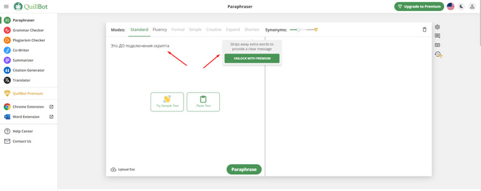 - Кнопки "Копировать" и "Удалить" для управления выделенным текстом.