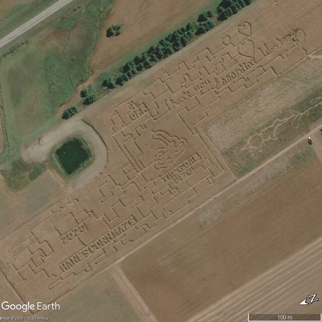 Первый в этой местности «кукурузный» лабиринт в 2009 году сделали канадские фермеры около городка Дундас. Каждый год фермеры стараются удивлять местных жителей новыми лабиринтами, ведь их прохождение – это одно из основных активностей в сельской местности Канады и США. При этом на каждой подобной ферме обязательно должны быть кафе с бургерами и пекарня с фруктовыми пирогами.