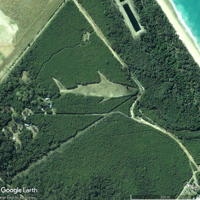 Находится в государственном заповеднике Киваррак (Kiwarrak State Forest). Аборигены Бирипи (Biripi) вырубили кустарник, создав поляну в форме акулы, которая является символом их культуры.