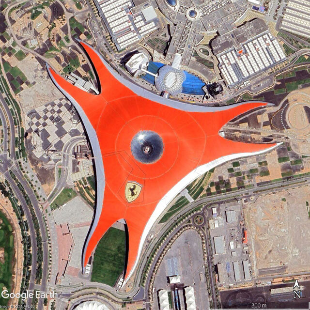 Ferrari World расположен на искусственном острове Яс в столице Объединённых Арабских Эмиратов – Абу-Даби. Самый большой в мире крытый тематический парк площадью 86 000 кв. метров является также первым в мире посвящённым марке спортивных автомобилей Феррари. В центре здания красуется 100-метровая стеклянная воронка с находящимся посередине аттракционом G-Forse – башней свободного падения высотой 70 метров.