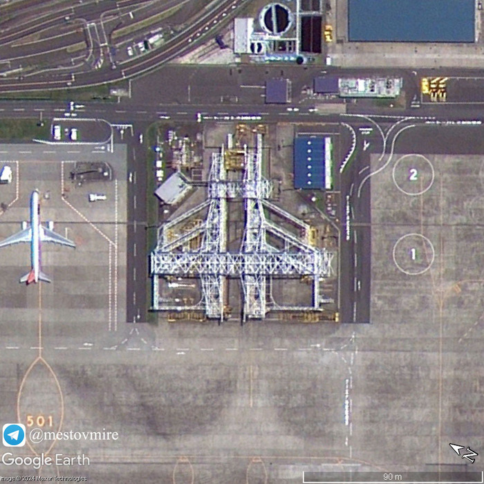 Разглядеть эту мега мойку самолётов можно и на Просмотр улиц от Google.