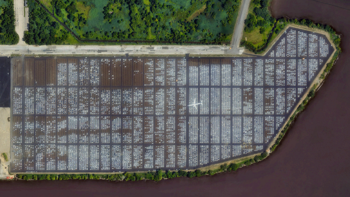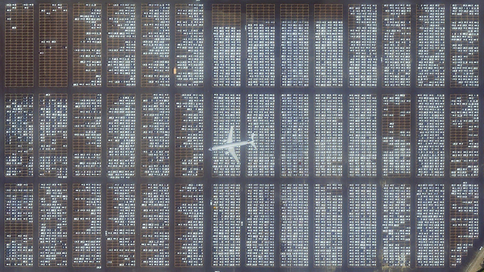 Пролетающий самолет. И около 10 тыс. новеньких автомобилей. Недавно нашел.