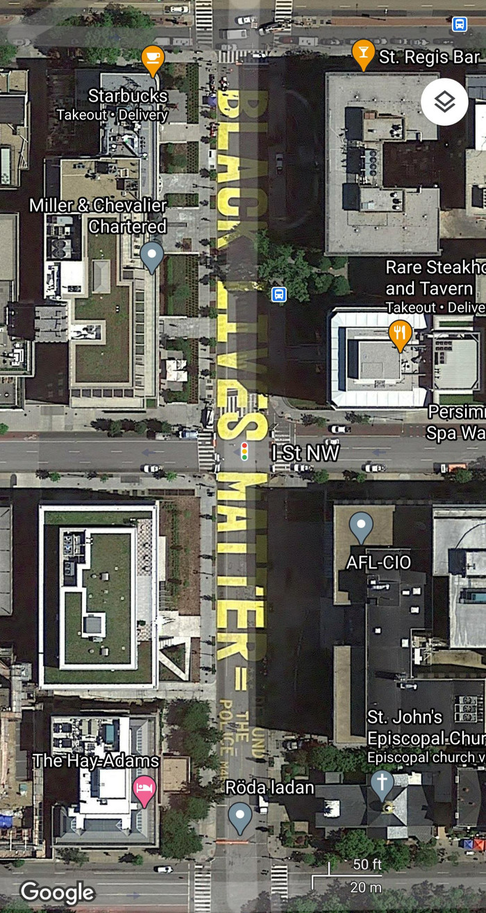Огромная надпись "Black lives matter" напротив площади Лафайет. Вашингтон, США.