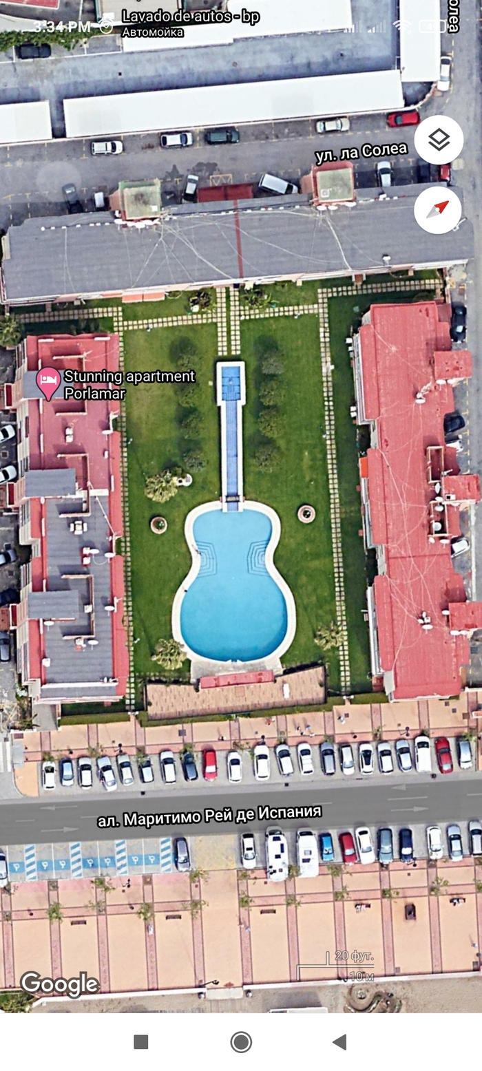 Бассейн в виде гитары на побережье Фуэнхирола, Испания.