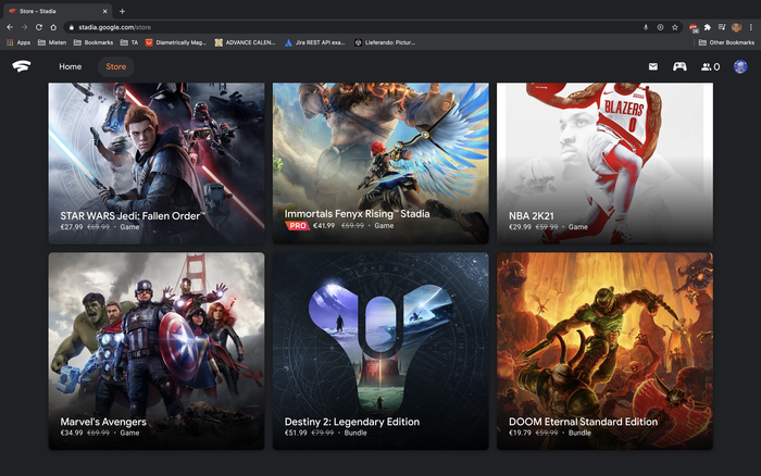 Если задержка и есть, то она незаметна. Возможно, ситуация отличается в шутерах, заточенных на высокую частоту кадров. К сожалению, это не моя категория игр, так что ничего не могу сказать. Минусом в данной ситуации является то, что новая операционная система означает новую игровую платформу, а значит и игры надо покупать отдельно. А также то, что игры надо под неё оптимизировать, а значит нельзя просто добавить все существующие игры в библиотеку. На декабрь 2020 года в библиотеке Стадии 161 игра. В этот список входят такие крупные тайтлы как Assassin’s Creed Valhalla, Baldur’s Gate III, Doom Eternal, Marvel’s Avengers, Red Dead Redemption 2, а также Cyberpunk 2077.