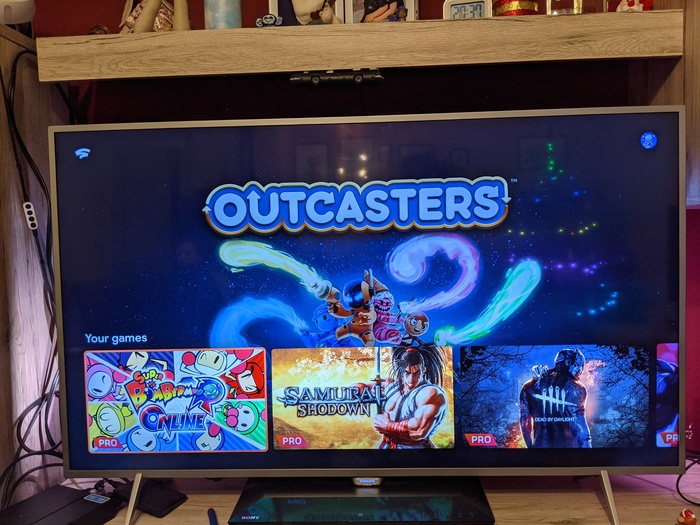Немного о том, как я пользуюсь Стадией. В основном я использую Гугл Стадию как дополнительную игровую консоль через Хромкаст Ультра, подключенный к 4К телевизору в зале. Второе по частоте устройство — это мой телефон. Там я в основном играю в инди, в которые удобно играть с тачпадом.