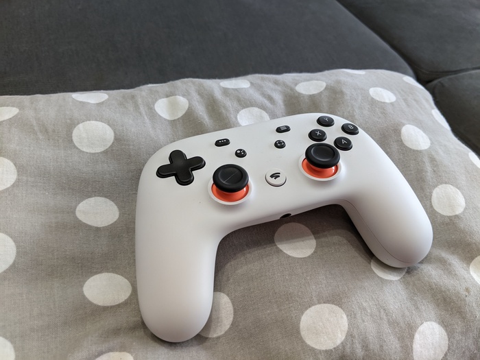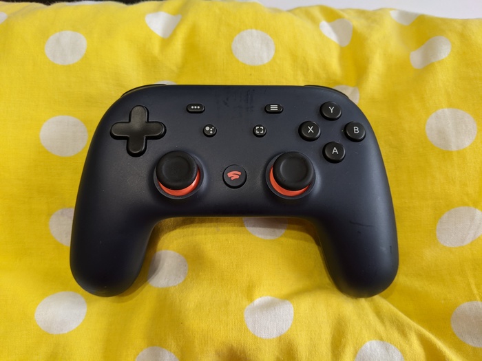 Геймпадом очень удобно пользоваться. Расположение кнопок движения, джойстиков и название триггеров схоже с PS, в то время как «буквенные» кнопки как у Xbox. Дополнительно присутствует кнопка Гугл Ассистента и кнопка для снятия скриншотов и коротких видео на 30 сек. Особенность Геймпада Founder Edition в цвете, который кроме как по предзаказу купить нельзя.