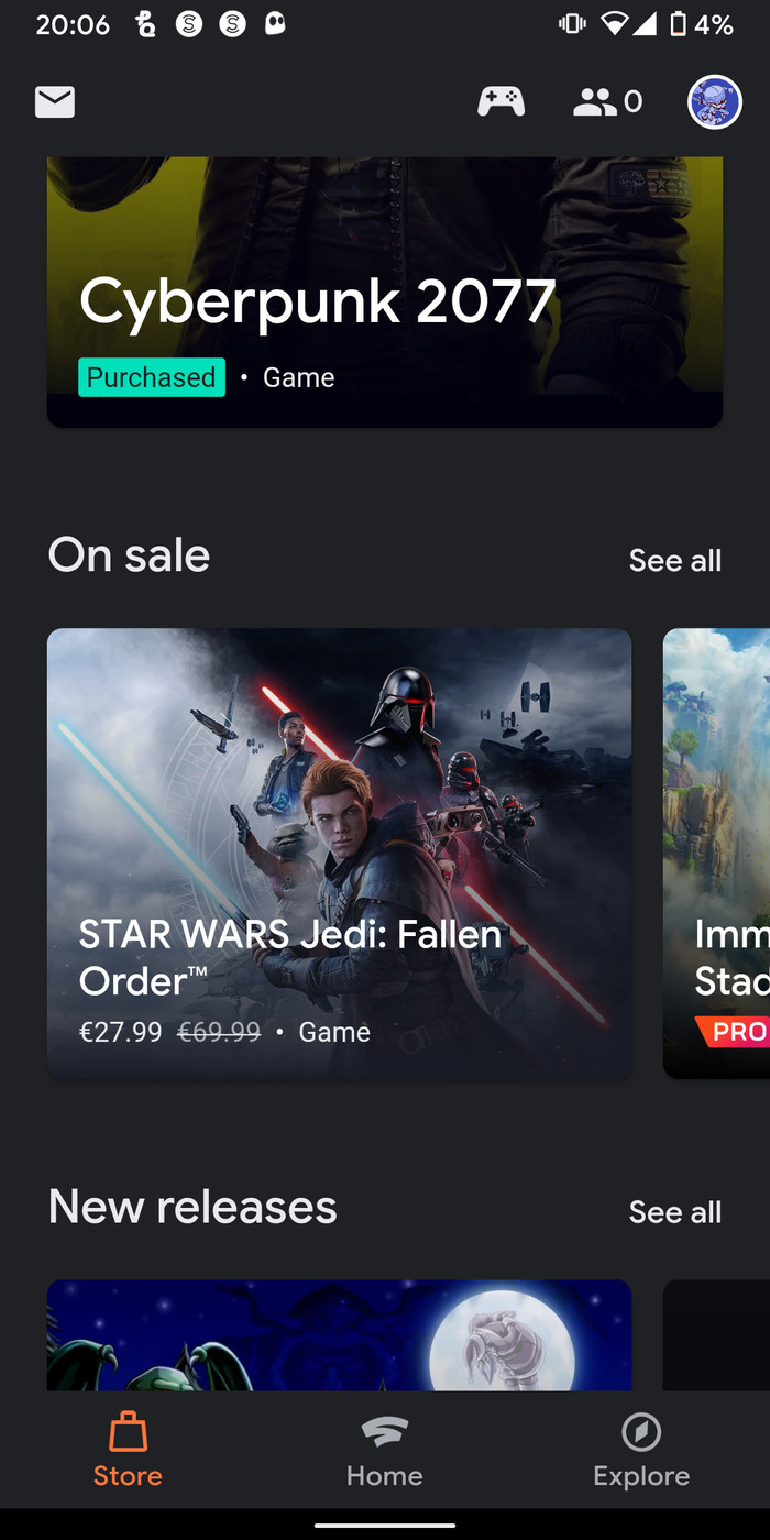 Отдельно хочу отметить Cyberpunk 2077. Во-первых, для дополнительного привлечения пользователей Google запустил акцию. При предзаказе игры пользователь получал Stadia Premiere Edition (99€) бесплатно. В Stadia Premiere Edition входят: