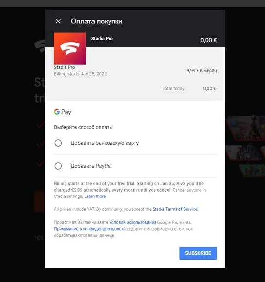 - Stadia Pro на 3 месяца (10€*3=30€)