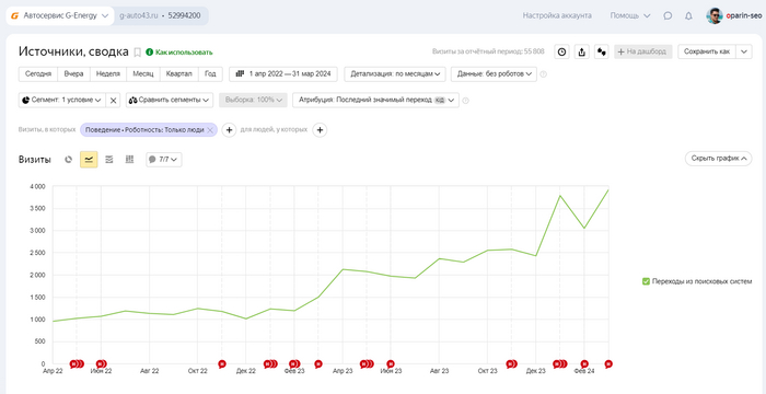 Достигнутые показатели наглядно отражены на графиках роста трафика и позиций по ключевым запросам: