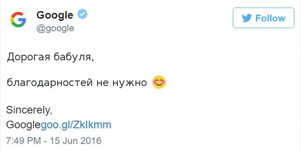 "Она думала, что так принято", - говорит Бэн. Тем временем твит стал популярным, и на него отреагировали в Google!