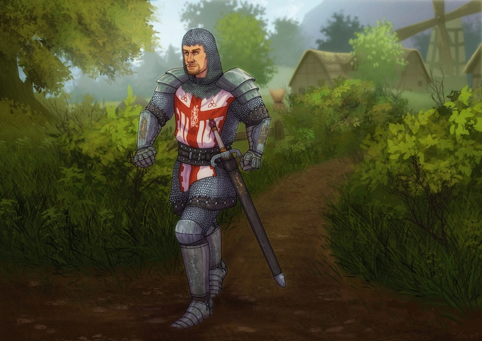 Безымянный в доспехах рыцаря возле фермы Лобарта