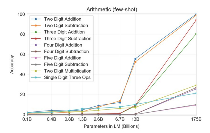 GPT показал удивительную эмерджентность, когда количество переходит в качество. С повышением количества параметров умения росли скачкообразно:
