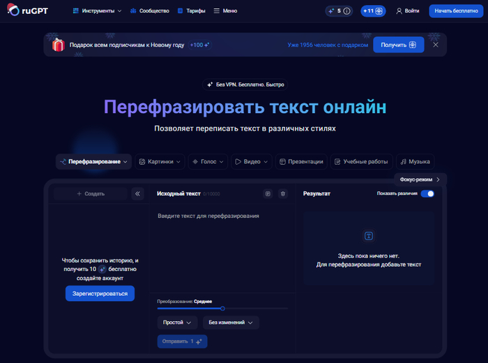 Без VPN и сложных настроек — сервис работает онлайн и доступен с российских IP-адресов.