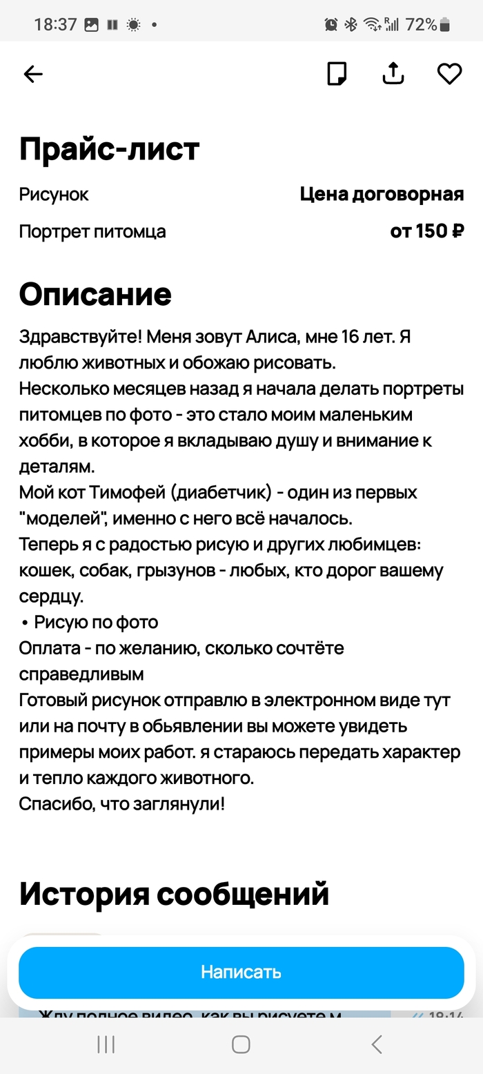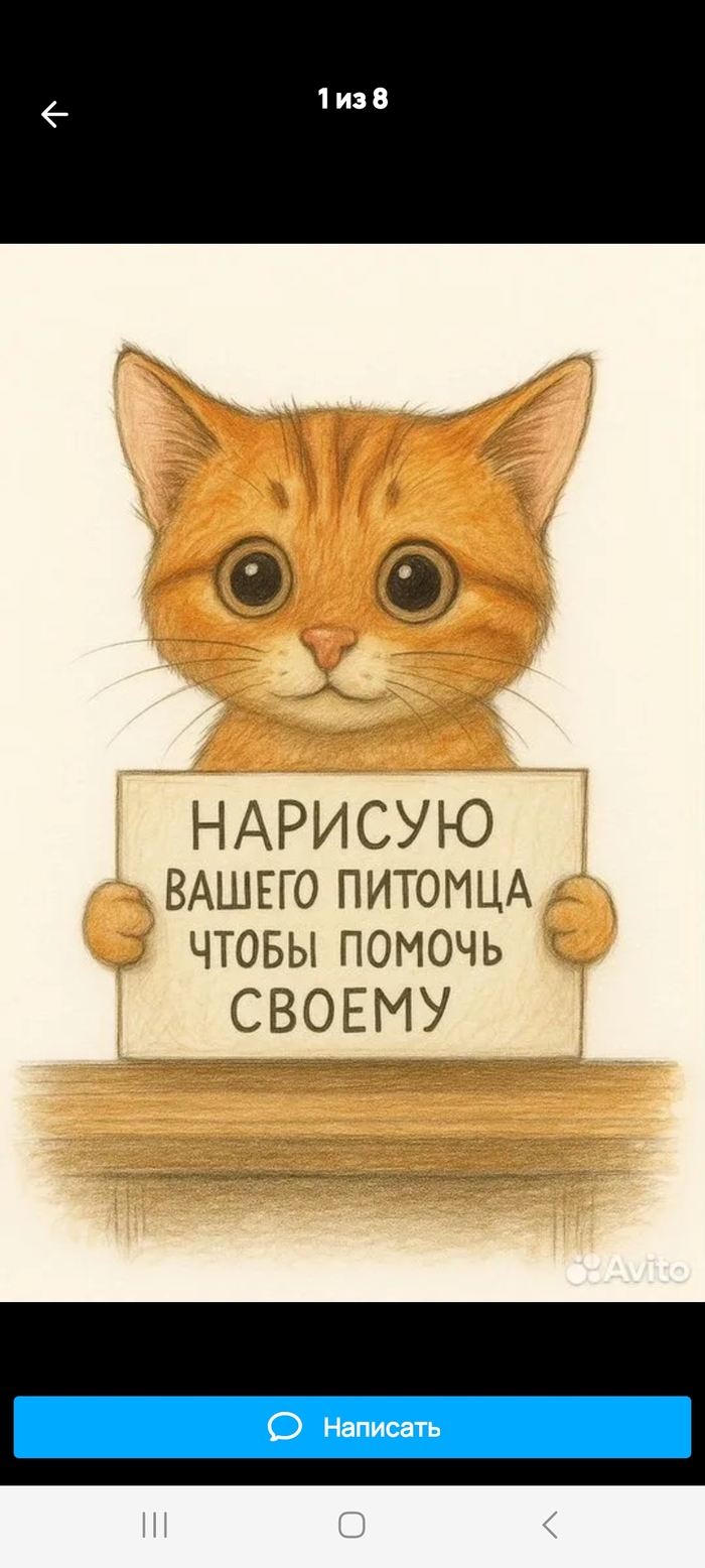 Нашел себе борьбу в своей категории) на авито появились вот такие объявления. Мол я девочка/мальчик 9-16 лет. Рисую картинки ваших питомцев за 150+ рублей. Там есть объявления действительно нарисованые от руки, есть и объявления в которых указано, что рисунок выполнен в ии. Но есть и такие вот индивиды, которые выдают явный рисунок в ии за свой. Причем текст обьявления часто так же создан в ии. Я пишу таким "авторам" и развожу их на рисунок, как правило они выдают картинку, которую проф художнику рисовать несколько часов, за 10 минут. При этом автор отказывается записать полное видео процесса рисования.