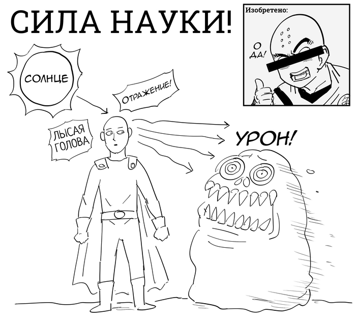 Сайтама из One Punch Man обретает мощные сверхспособности, вызванные процедурой лечения волос.