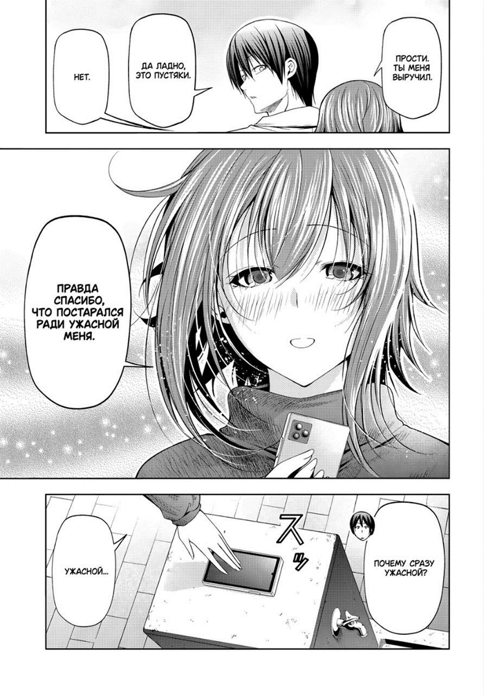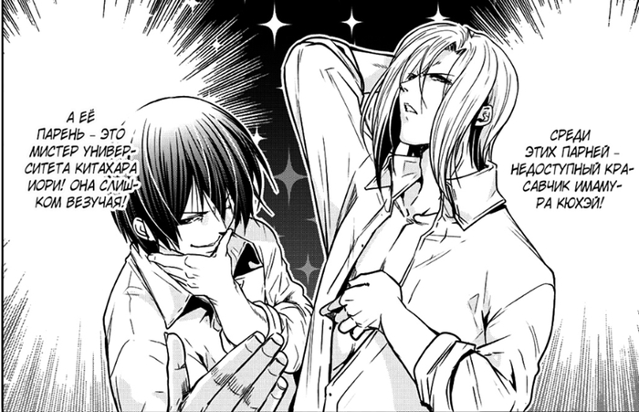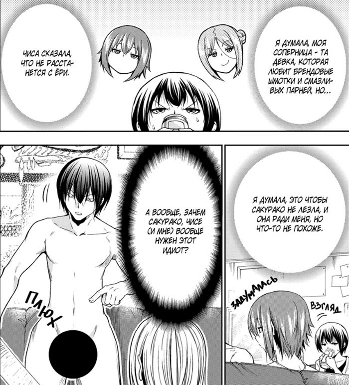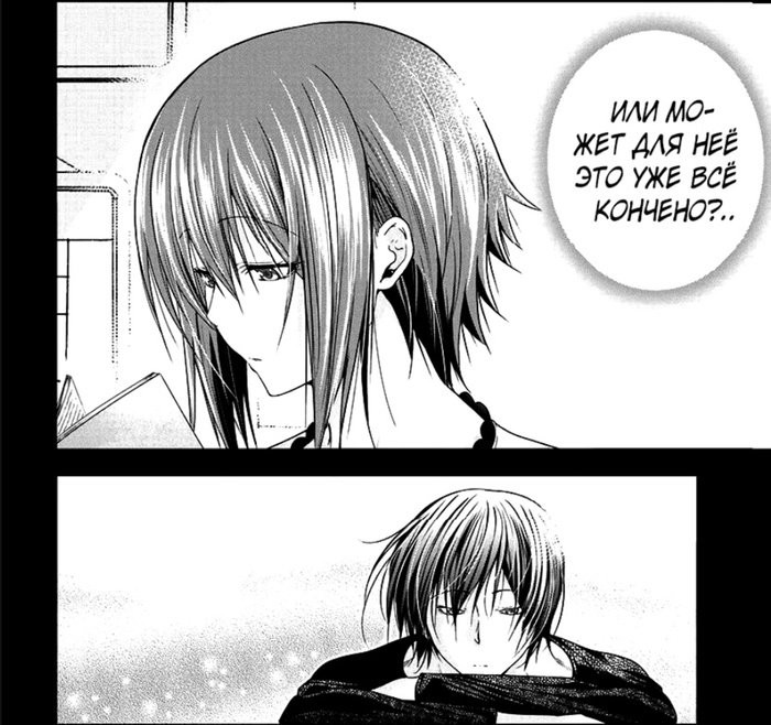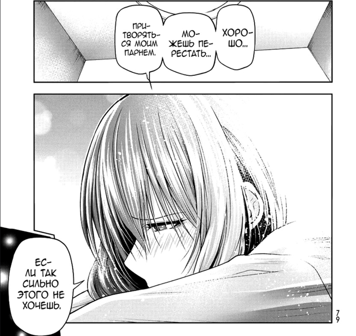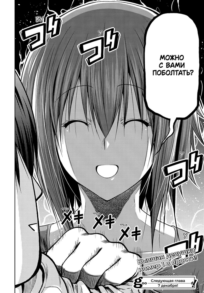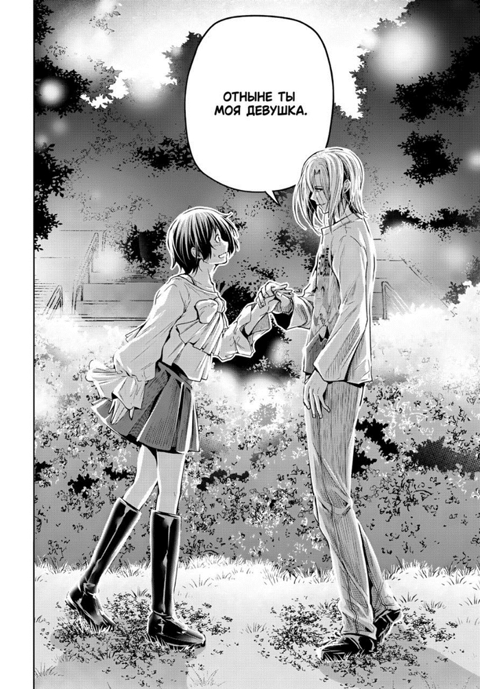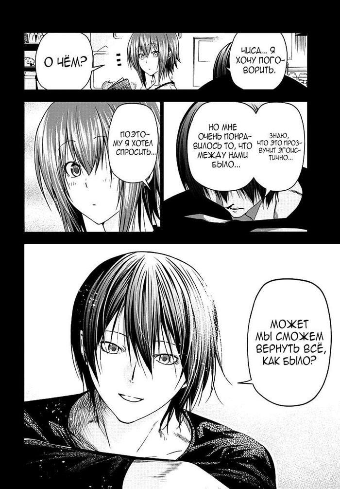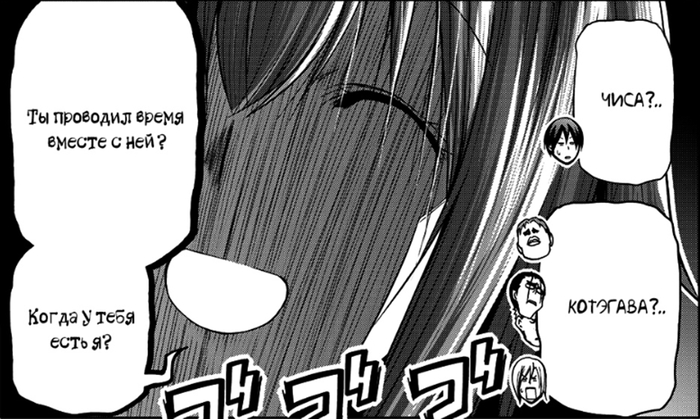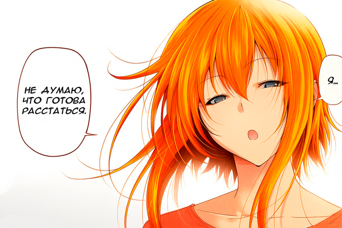 Забегая вперёд. Это очень обидный момент, так как это окажется недопониманием между ними (Иори предлагает не расставаться (он думает, что их отношения завершены, и предлагает их вернуть), а Чиса думает, что он предлагает расстаться (она считает, что они не расстались, и он предлагает всё вернуть к состоянию до отношений)), и он был создан только для того, чтобы случилась эта глава. А это глава с участием одногруппников. И они все до жути тупые, не… Если читать первый раз, то многие главы будут смешные (но не эта – она в середине сюжетного взрыва, тут каждая глава продвигает, и такие филлеры бесят), но даже когда я второй раз это читал, они только бесили (они и в первый раз бесили, но это было вперемешку со смехом).