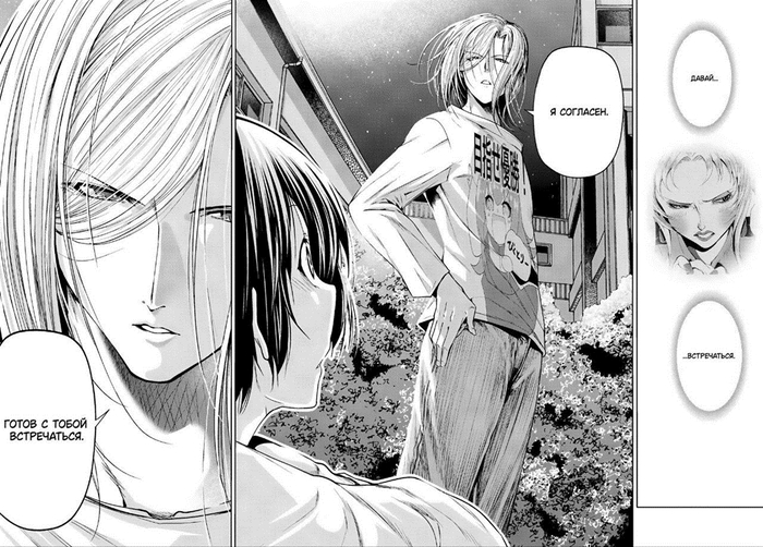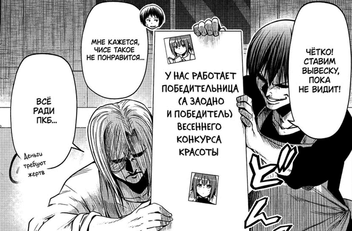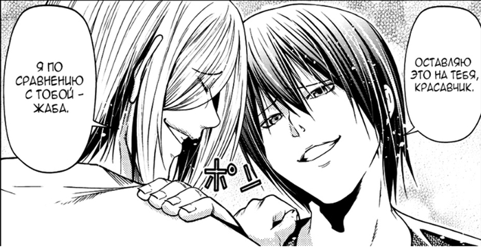 Как персонажи они не особо развиваются (многие скажут, что это минус, но мне гораздо страннее было бы видеть серьёзные изменения в двух уже сформированных личностях, да ещё за период в год), но являются сначала двигателем всех событий, а потом одной из ключевых целей героев (проводы старшего поколения «ПкБ» тянется уже 60 глав, и многие события и арки продиктованы этой необходимостью).