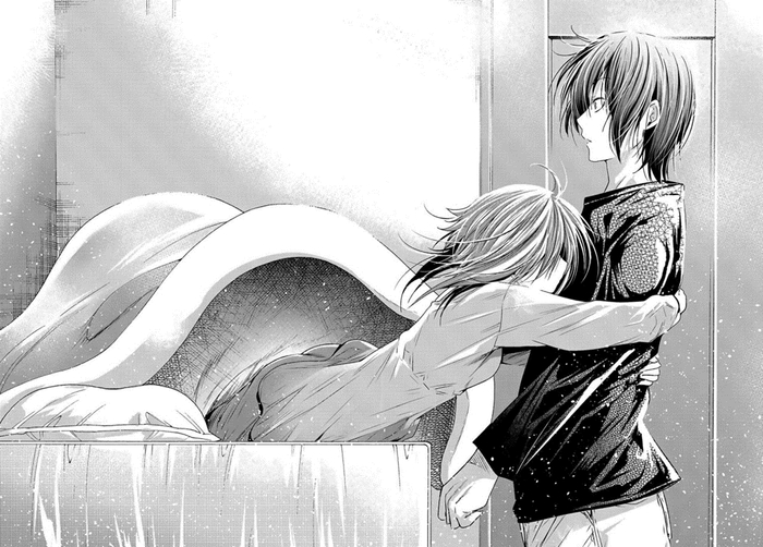 Только если изменения отношений Сакурако к Иори произошли за 30 глав и нам это вкинули в лоб, то признание Чисой того, что Иори ей дорог, а следом и развитие этих отношений по капле капало 80+ глав, и нам не бросали это в лицо – нет, это долгое время прослеживалось в мелких поступках героев, а также мыслями и действиями Чисы на задниках юмористических сцен. И есть один персонаж, который это действительно замечал – Азуса. И ровно в тот момент, когда Чиса была готова признаться себе в том, что она привязана и влюблена в Иори, но только невозможность его потерять её останавливала, Азуса освобождает Иори от обещания. И первая же опасность потерять Иори заставила её действовать, а потом и признать причину своих действий.